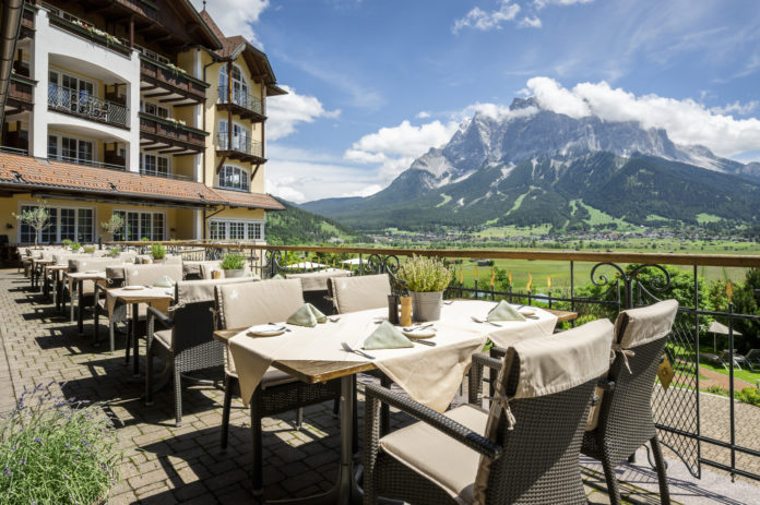 Gäste des Vier-Sterne-Superior Hotels Post Lermoos werden ganz bequem Zeuge dieses besonderen Abends. Nach einem exquisiten Abendmenü aus der Drei-Hauben-Küche in den behaglichen Stuben des Restaurants eröffnet sich ab kurz vor zehn von der Terrasse, aber auch von nahezu überall im Haus, ein atemberaubender Ausblick auf die Zugspitze und die umliegenden Berge, wenn die Motive in der aufkommenden Dunkelheit langsam Form annehmen.