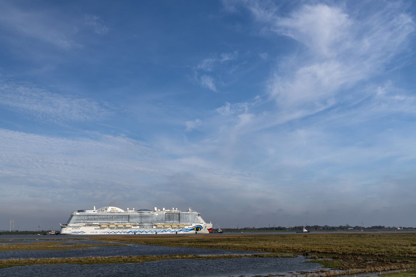 Mit AIDAnova geht das weltweit erste Kreuzfahrtschiff auf große Fahrt, das mit emissionsarmem Flüssiggas (LNG) betrieben werden kann, im Hafen und auf See. Die Emissionen von Feinstaub und Schwefeloxiden werden nahezu vollständig vermieden. Der Ausstoß von Stickoxiden und die CO2-Emissionen verringern sich nachhaltig.