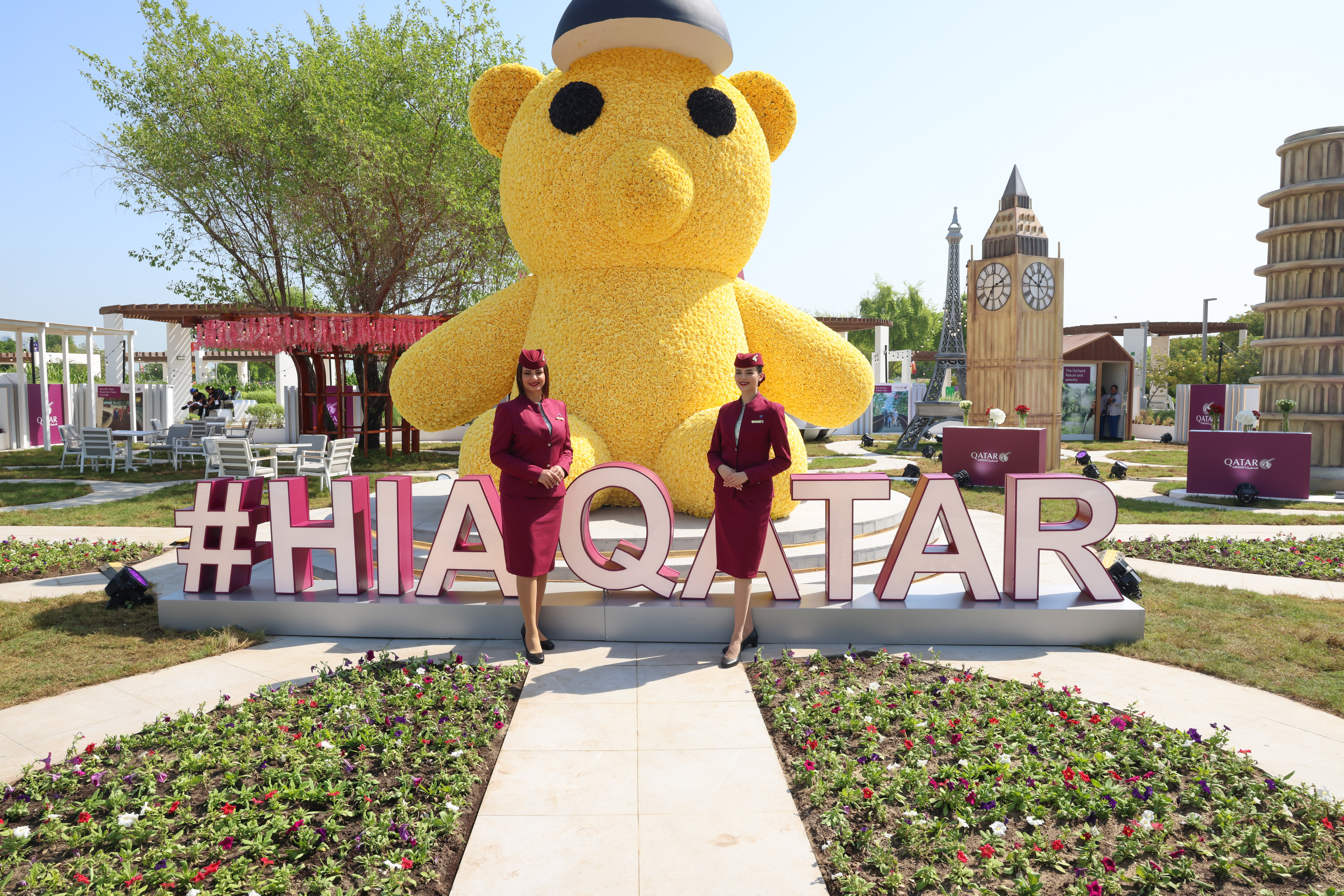 Das Design greift ikonische Wahrzeichen aus allen Kontinenten auf, die Qatar Airways miteinander verbindet, einschließlich des Nahen Ostens, Europas und Asiens, und unterstreicht die zentrale Rolle Qatars als globales Drehkreuz. Der Garten zeigt nicht nur die umfassende Konnektivität der Fluggesellschaft, sondern verkörpert auch den Geist der Vielfalt, der Nachhaltigkeit und der kulturellen Feier.