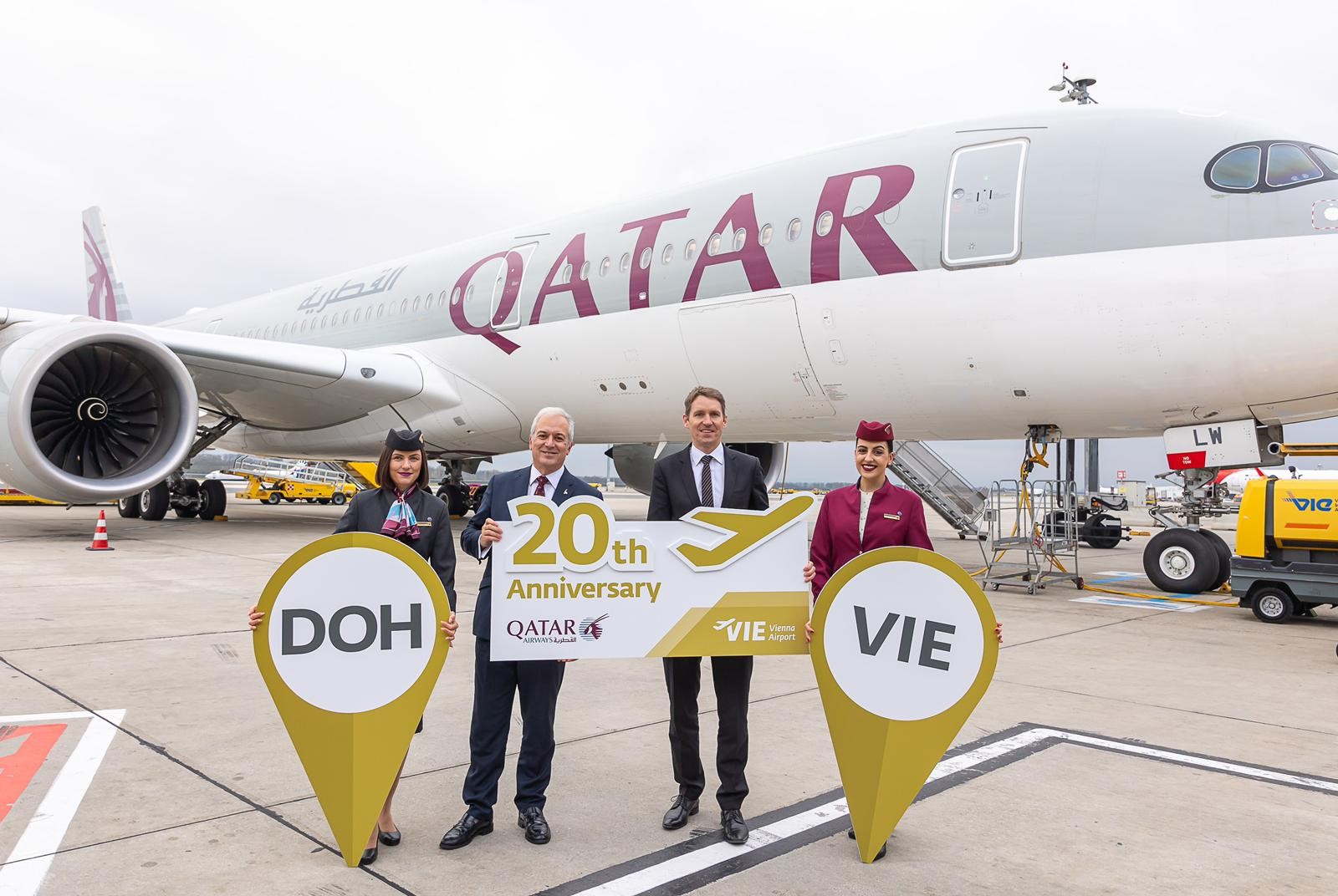 Qatar Airways feiert das 20-jährige Bestehen der Flugverbindung zwischen Wien und Doha, Qatar. In den vergangenen zwei Jahrzehnten hat sich Österreich für Qatar Airways zu einem wichtigen Markt in Zentraleuropa entwickelt.