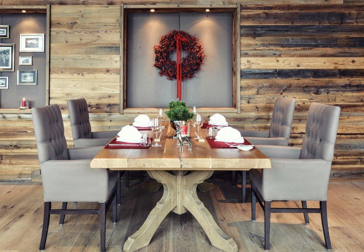 Michael Helfrich gelingt im Restaurant „echt. gut essen.“ die genussvolle Verbindung von heimischen und natürlichen Produkten mit kreativem Fine Dining auf höchstem Niveau. Die elegante Altholzstube, in der sich das „echt. gut essen.“ befindet, bietet in traditionellem und dennoch modern-alpinem Ambiente Platz für bis zu 20 Personen. In der Region verwurzelte Materialien wie feinste Filzstoffe und sonnengegerbtes Altholz bilden einen stimmigen Kontrast zu handgefertigten edlen Möbeln sowie modernen Deko-Elementen und schaffen mit viel Fingerspitzengefühl ein harmonisches Gesamtbild. In exklusivem Rahmen und privater Atmosphäre werden monatlich wechselnde, saisonal abgestimmte Gourmet-Menüs im Einklang mit Natur und Region sowie korrespondierende Weine serviert.