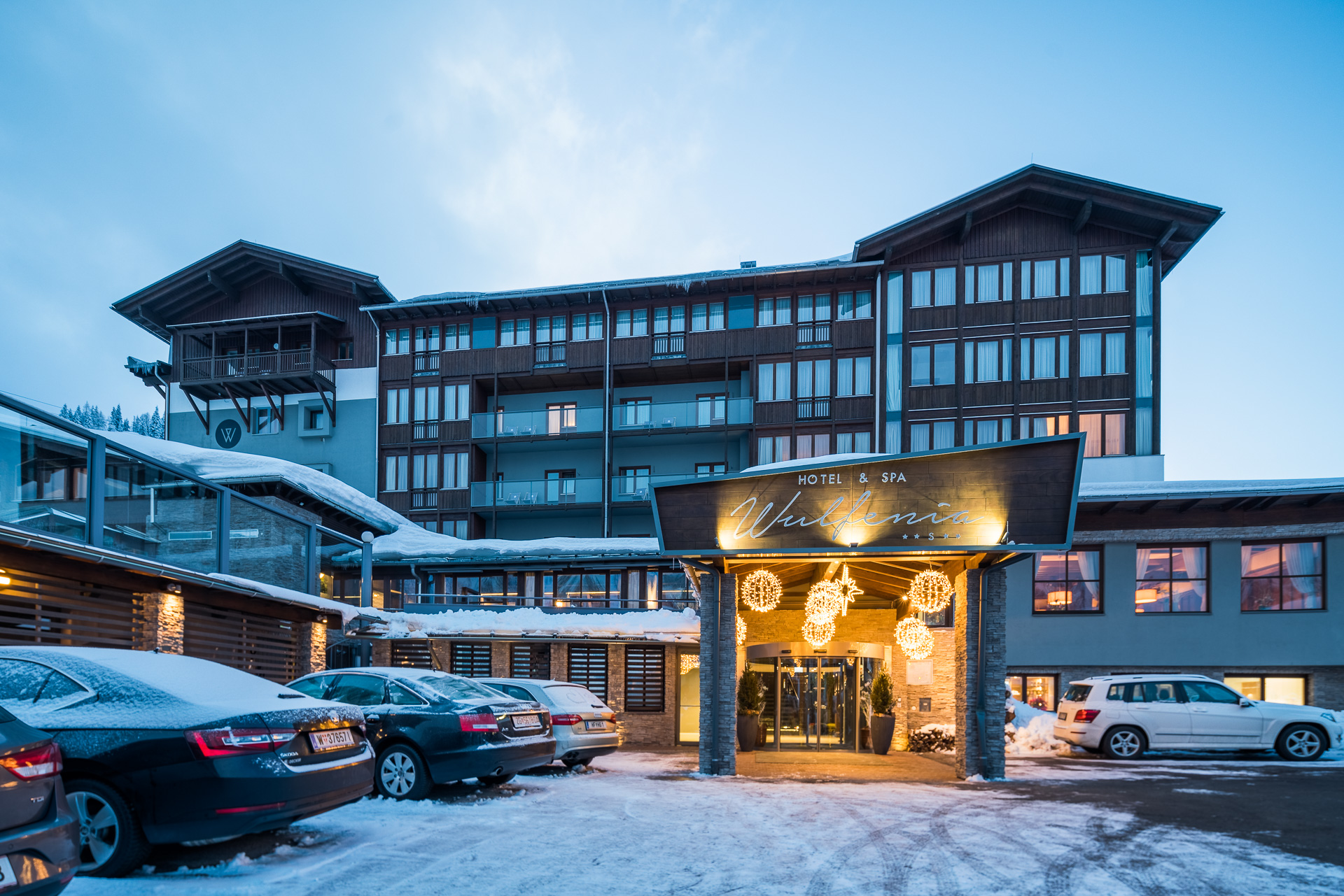 Nach einem aktiven Wintertag lässt sich der Panoramablick über die verschneite Alpenlandschaft auch ganz entspannt aus dem Whirlpool im Freien oder im beheizten Außen-Solebad genießen. Für noch mehr Erholung sorgt die 600 m² große SPA- und Wellnessoase des Wulfenia Vitalis Spa. Hier kann man sich mit dem oder der Liebsten im lichtdurchfluteten Indoor-Pool treiben lassen oder in einer der verschiedenen Saunen schwitzen. Verwöhnt wird auf Wusch auch von Kopf bis Fuß mit unterschiedlichen Massagen und Beautybehandlungen oder man lässt den Tag im hoteleigenen Fitnessraum ausklingen.