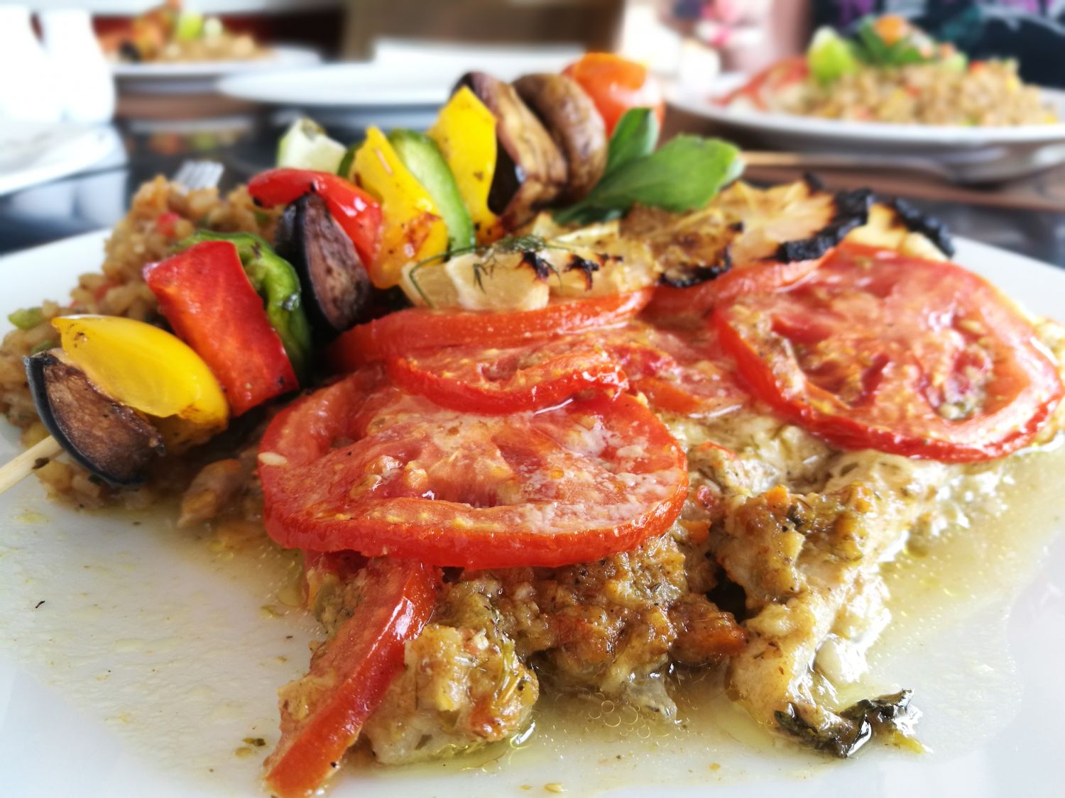 Für uns schwingt Mr. Kamel den Kochlöffel, bzw. das Messer und zeigt vor laufender Kamera wie das Fischgericht zubereitet wird. Mit Meeresfrüchte-Reis und leckeren Gemüse-Spiesschen anbei ist das fertige Gericht ein Leckerchen der besonderen Art.