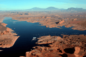 Zu einer der schönsten Fährfahrten weltweit kürte das amerikanische Travel & Leisure Magazin im letzten Jahr die Strecke über den Lake Powell zwischen Halls Crossing und Bullfrog. Nur von den heimischen Vögeln begleitet erlebt man diese ruhige halbstündige Überfahrt über das blaue Wasser des Lake Powell, der in die orange-rötlichen Felsen des Glen Canyons eingebettet liegt, während man in der Ferne gut den freistehenden Navajo Mountain erkennen kann.