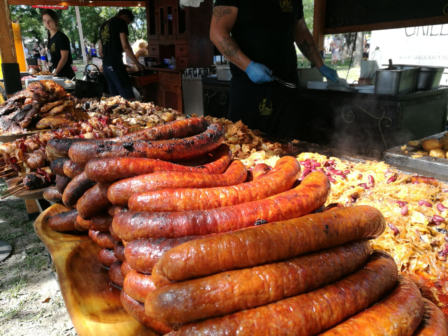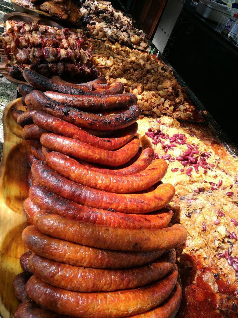 Doch wenn in Ungarn gegrillt wird, dann richtig. Neben den typischen Kesselvarianten um den Kesselgulasch zu kochen legt man auf den ungarischen Grill natürlich zuerst die Kolbász…Die ungarische Wurst. Diese gibt es in zahlreichen Varianten und schmeckt gut angegrillt hervorragend. Neben der Wurst kommt dann noch das gut gewürzte Räuberfleisch aufs Rost. Mit gutem Kraut nebenbei oder ein paar eingelegten Paprikas kann das Grillfest beginnen!