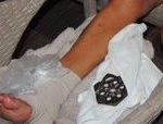 Es folgte dann eine ausführliche Information durch den Arzt.Während der Bericht geschrieben wurde, hatte man offensichtlich bereits wieder das Jamahal informiert, denn nachdem wir zusätzlich mit Medikamenten, Krücken und Bandagen versorgt wurden fuhr bereits wieder der Hotel Bus mit trockenen Tüchern und frischem Eis vor. Zurück fuhren wir dann ohne Hupen und blinken.