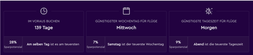 ● Mittwoch ist der günstigste Tag für Flüge zu weltweiten Zielen, während Samstag am teuersten ist.
