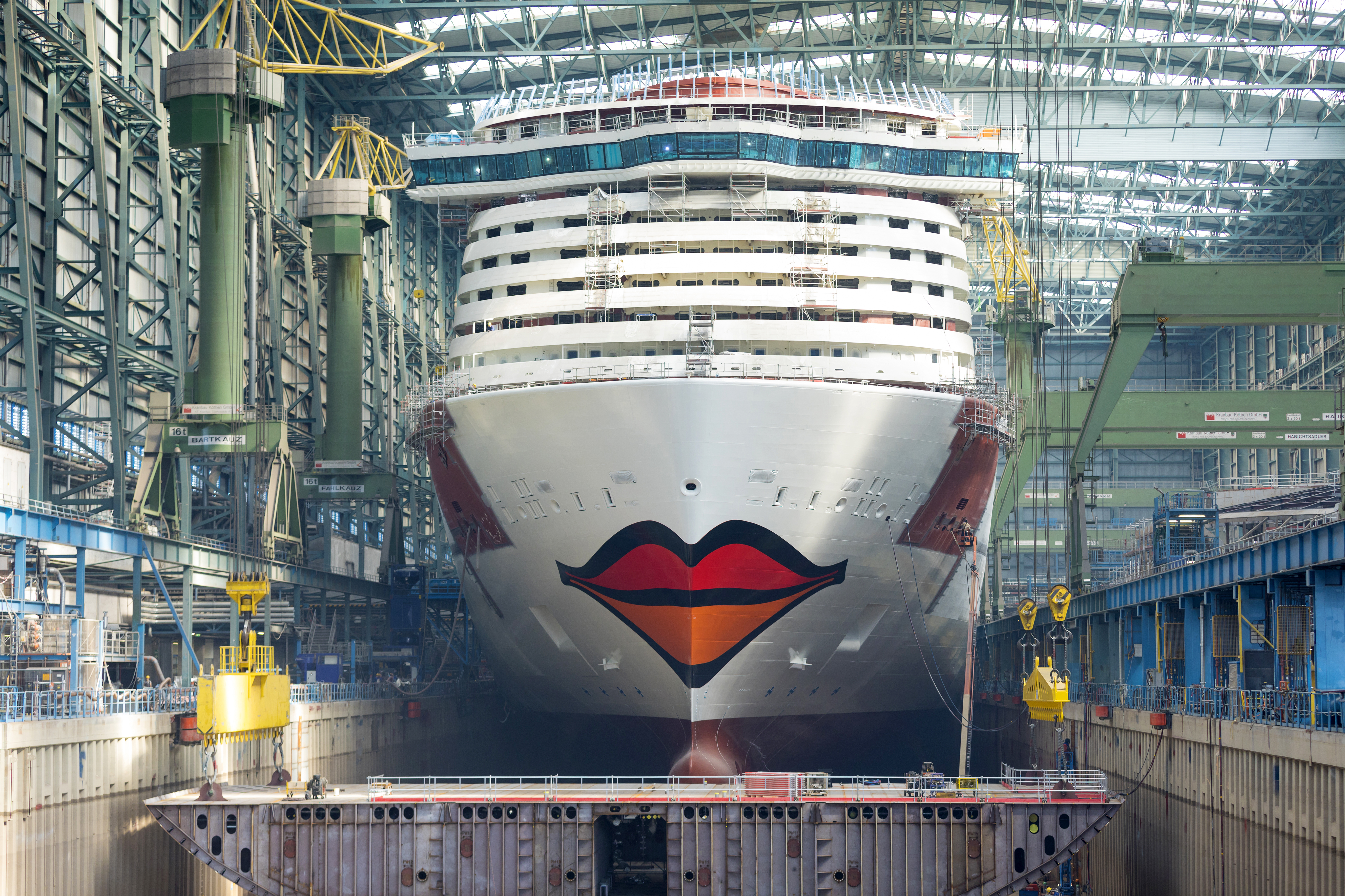 Das jüngste Mitglied der AIDA Flotte wird ab Dezember 2018 über die Weltmeere fahren. Ihr Lächeln erhält AIDAnova derzeit in der Meyer Werft in Papenburg. Die Außenbemalung mit Kussmund, Auge und Lidstrich sowie Welle wird wie bei allen AIDA Schiffen nach der Idee des Rostocker Künstlers Feliks Büttner umgesetzt. Der Kussmund ist das erste Element, welches bereits auf einer Fläche von 250 qm den Bug des Schiffes ziert. Insgesamt wurden für das Markensymbol 50 Liter Farbe in den Farbtönen Schwarz, Orange und Rot verwendet.