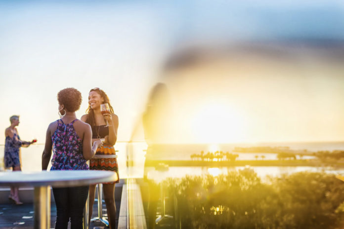 Über den Dächern von St. Pete/Clearwater fängt der Solourlaub bereits am ersten Abend an. In Downtown St. Pete, St. Pete Beach und Clearwater bieten mehrere Rooftop Bars und Restaurants typisches Florida-Soulfood sowie Meeresdelikatessen an – wie zum Beispiel The Hurricane Seafood Restaurant oder The Canopy Rooftop Lounge. Auch im The Dewey Beach Bar & Grill gibt es die spektakuläre Sicht auf den Golf von Mexiko ganz umsonst dazu. In Jimmy’s Crow’s Nest geht es hoch hinaus: Die Bar liegt im zehnten Stock und auch sie garantiert eine einzigartige Aussicht auf den Clearwater Beach und den Golf, der in der untergehenden Sonne glitzert. Wer sich dagegen auf eine ausgiebige Partynacht vorbereitet, der sollte die Cocktails der Hi-Fi Rooftop Bar des Fenway Hotels nicht missen.