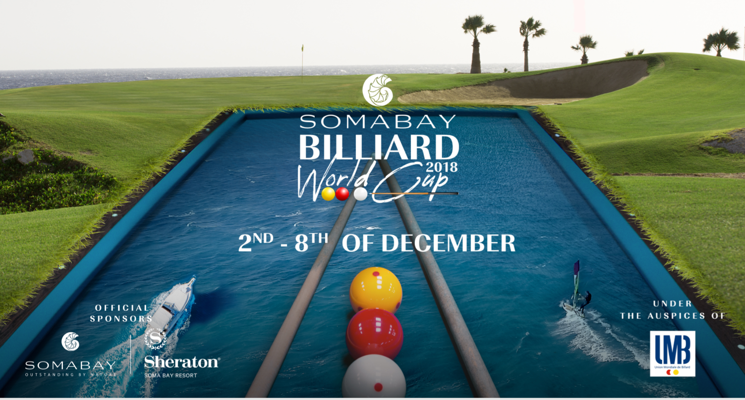 Die internationalen Meister der Queues live in Somabay: Vom 02.-08. Dezember 2018 sind das Urlaubs-Traumziel Somabay und das Sheraton Somabay Gastgeber des “Somabay 3-Cushion Billiard World Cups 2018” (Somabay Dreiband Billiard Weltcup) unter der Schirmherrschaft der Union Mondiale de Billard (UMB), des Ägyptischen Billiard Verbands (Egyptian Federation of Billiard Sports/ EFBS) und des Ägyptischen Ministeriums für Jugend & Sport.