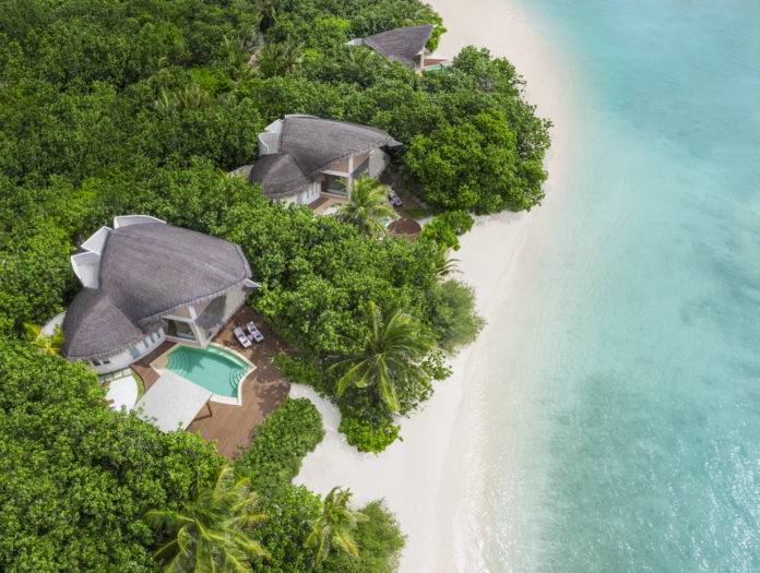 Unvergleichlich aber sind die Duplex Villen des Resorts, sie garantieren, dass Paare ihre Privatsphäre haben. Ganze 285 Quadratmeter stehen ihnen in diesen zweistöckigen Villen zur Verfügung. Dort fühlen sich Verliebte wie auf ihrer eigenen, einsamen Insel. Rückzug ist garantiert. Die Zimmer öffnen sich alle zum Meer hin, so dass man tatsächlich das Gefühl hat, allein auf der Welt zu sein, zudem gibt es einen direkten Zugang zu Strand von den Villen aus. Der private Pool auf der über dem seichten Meer schwebenden Terrasse gehört hier einfach dazu. Morgens wird dort auch gern im privaten Pool ein auf dem Tablett schwimmendes Frühstück serviert. Der atemberaubende Infinity-Pool des Resorts nur für Erwachsene garantiert ungehindertem Blick auf das Meer.
