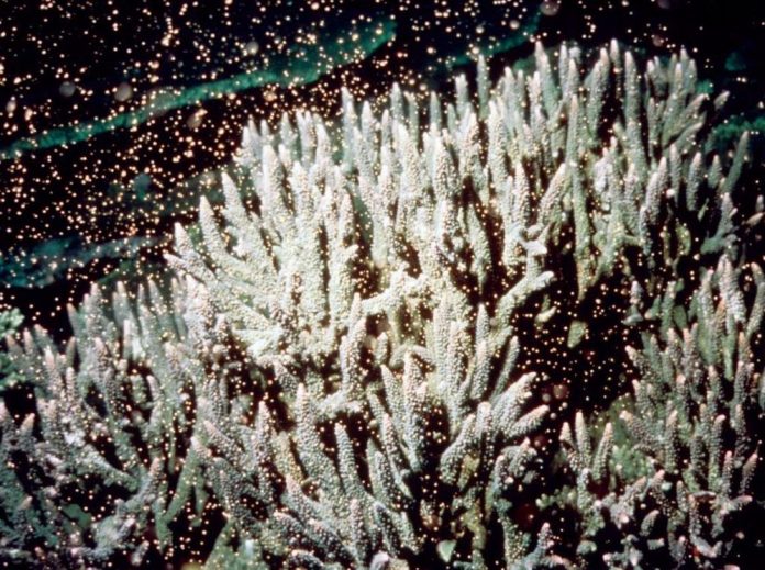 Das Coral Spawning wurde erst vor 35 Jahren von Biologen entdeckt. Dabei erforschte man, dass Korallen im Gegensatz zu den Pflanzen und Gräsern an Land, die ein paar Wochen für den Bestäubungsprozess benötigen, lediglich einmal im Jahr für ein paar Nächte Zeit für die Paarung haben. Das Absondern der Geschlechtszellen muss zum gleichen Zeitpunkt stattfinden, da sonst die Meeresströmungen die einzelnen Gameten (zusammenfassende Bezeichnung für Eizellen und Samenzellen) zu sehr verstreuen und die Chancen einer Befruchtung somit enorm sinken würden. Findet das Spawning statt, werden so viele Gameten freigelassen, dass Taucher meist nicht weiter als einen Meter sehen können – es wirkt wie ein Schneesturm unter Wasser – und am nächsten Tag ein orangefarbener Teppich aus unbefruchteten Eiern an der Meeresoberfläche treibt.