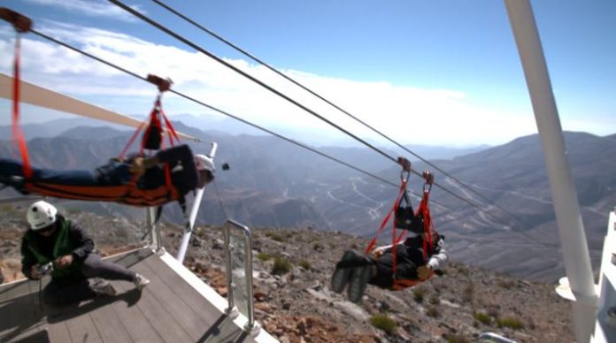 Das Emirat Ras Al Khaimah hat mit der längsten Seilrutsche der Welt ein Prestigeprojekt eröffnet und damit bereits einen Eintrag in das Guinness-Buch der Rekorde geschafft. Die neue Zipline startet am höchsten Berg der Vereinigten Arabischen Emirate Jebel Jais. Daher „Jebel Jais Flight“ benannt misst sie 2.830 Meter und bietet Höchstgeschwindigkeiten von bis zu 150 Stundenkilometern. Ein Stahlkabel wiegt über sechs Tonnen. Adrenalin-Junkies aus aller Welt können das Abenteuer ab dem 1. Februar 2018 genießen. Das Millionenprojekt in der spektakulären Gebirgsregion ist ein Meilenstein auf Ras Al Khaimahs Weg zum führenden Abenteuer- und Aktivzentrum im Nahen Osten.