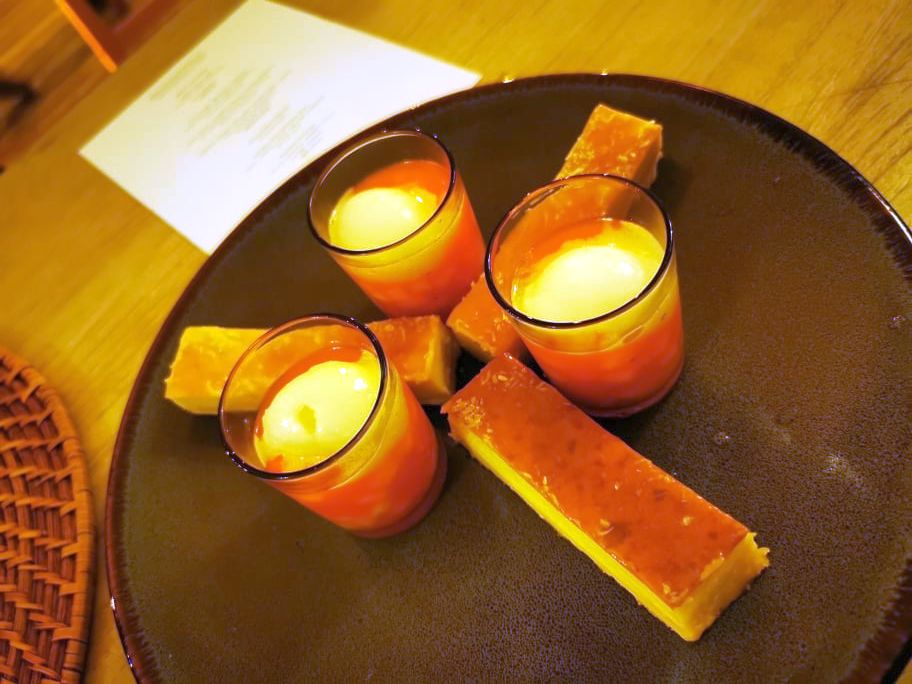 Das Hauptgericht glänzte aus einem Guadeloupe Fish Stew mit Kräutern, Tomaten und Red Snapper. Ein Chicken Colombo mit karibischem Einschlag, Kartoffeln, Karotten und Kräutern. Sowie das Vegetarische Ragout aus Kürbis, Yellow Curry, Spinat, Babymais, Koriander und mehr…