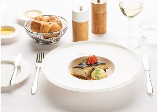 Baliklachs-Sashimi mit Dillcrème in der SWISS Business
