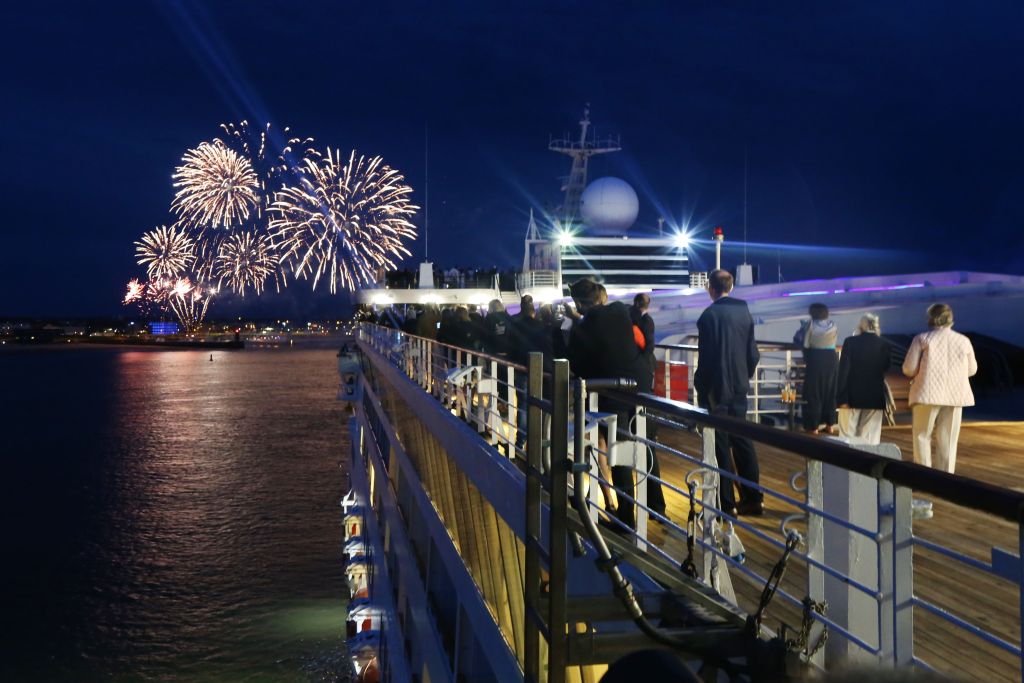Während hier langjährige ClubColumbus Mitglieder sowie Vertriebspartner in den Genuss eines exklusiven Programmes kamen, feierten auch an Land zahlreiche Kreuzfahrtfans mit. Denn das Geschehen wurde über große Leinwände nach Außen übertragen. An Bord wurde gemeinsam mit Kai Wingenfelder und Christof Steinschneider von der Band „Fury in the Slaughterhouse“ gerockt. Zusammen mit Annett Louisan stimmten die beiden Bandmitglieder mit ihrem Song „Trapped Today, Trapped Tomorrow“ spontan auch sanftere Töne ein. An Land heizte die Kultband „UnitedFour“ den Zuschauern richtig ein, bevor ein imposantes Feuerwerk den Himmel erleuchtete und den krönenden Abschluss der Taufe bildete.