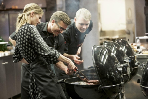 Beim Menü „Steak & Burger“ kommen ein Philly Cheesesteak mit Hühnchen, Koteletts und Karree vom Schwein mit Süßkartoffel-Smashed Potatoes und gefüllten Tomaten sowie wahlweise ein T-Bone Steak mit Räuchersalz oder ein Brie- und Bacon-Burger mit Gemüsechips auf den Rost. Zum Nachtisch lockt ein süßer Burger.