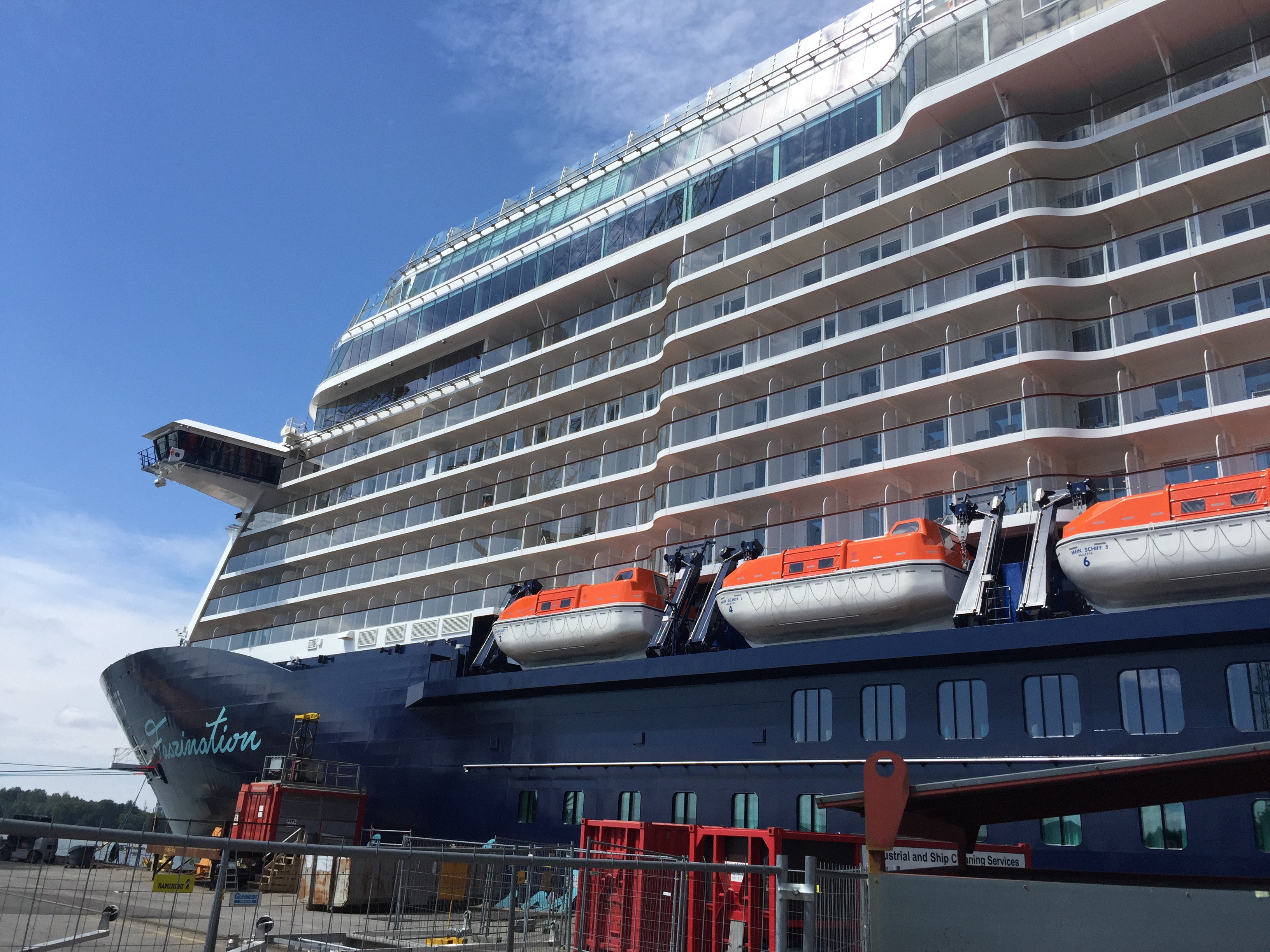 Die Mein Schiff 5 ist am Dienstagabend Punkt 18 Uhr aus dem finnischen Turku von der Kaimauer der Meyer Turku Werft ausgelaufen.