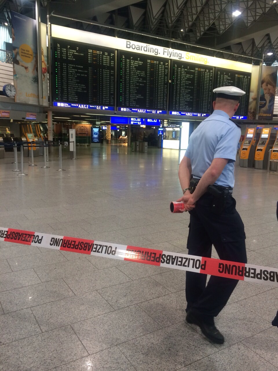 Am Frankfurter Flughafen sperrte die Bundespolizei bei Streikbeginn die Check In Schalter der Lufthansa ab.