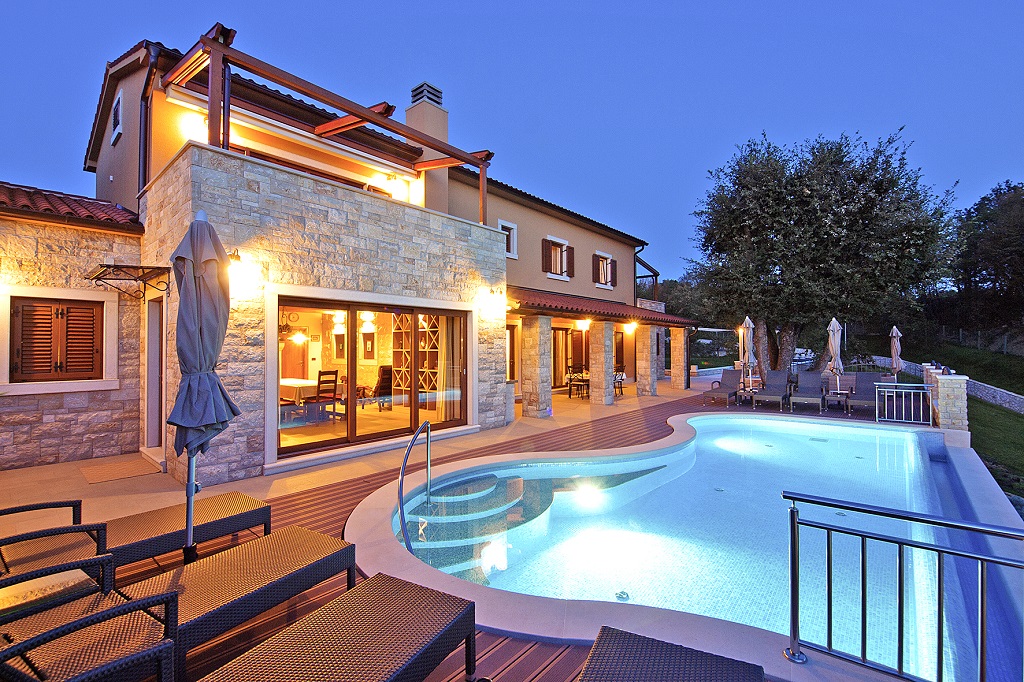 Für einen perfekten Mix aus dem rustikalen Charme des istrischen Landlebens und einem luxuriösen, sehr behaglichen Ambiente sorgt die Premium-Villa bei Labin in Kroatien. Auf 265 Quadratmetern können hier bis zu acht Gäste ihre Urlaubstage genießen. Zu den Highlights der Villa, die aus einem Haupthaus und einem Nebengebäude besteht, zählt der eigene Pool im großzügigen Außenbereich. Der eigene Gemüsegarten stellt eine weitere Besonderheit dar, denn hier lassen sich die Zutaten für die Mahlzeiten gleich selber ernten. Und alle Sportbegeisterten freuen sich über den hauseigenen Tennisplatz und das Golf-Putting-Green. Eine Woche in der Villa kostet ab 1.995 Euro.