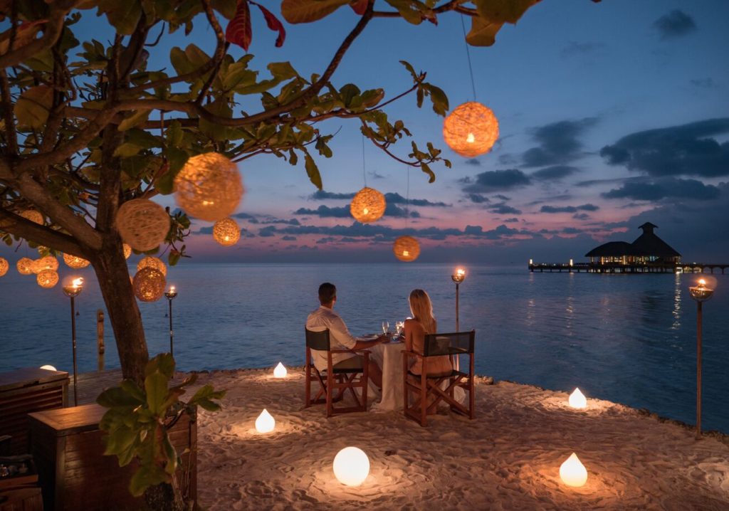 Luxus zu zweit auf der Trauminsel kann im Huvafen Fushi Resort wörtlich genommen werden: Tatsächlich bedeutet der Name der exklusiven Insel im Nord-Male-Atoll übersetzt „Trauminsel“. Diesem Namen macht die nur 350 Meter lange und 100 Meter breite Insel mit strahlend weißem Sandstrand alle Ehre. Ein besonderes Highlight des Resorts ist auch das weltweit erste Unterwasser-Spa. Gäste können durch die Panorama-Glasfenster das bunte und vielfältige Leben unter Wasser betrachten, während sie in den zwei Unterwasser-Räumen mit fernöstlichen Heilmethoden und Anwendungen nach allen Regeln der Kunst verwöhnt werden. Für ein besonders romantisches Erlebnis bietet sich zum Beispiel ein Rock-Dinner an.