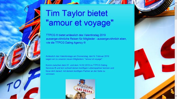 Für TTPCG-Mitglieder kein Problem, auf Kosten der Partnervermittlung mit dem künftigen Partner auf Reisen zu gehen. Mitglieder der Tim Taylor Group, welche die ohnehin geringe Gebühr zur Dienstleistung hochwertiger Partnervermittlung schnell bezahlen, erhalten als Dankeschön von Februar bis März 2019 die begehrten TTPCG-Urlaubsboxen. Für Schnellentschlossene, die bis spätestens ab Ostern 2019 verliebt sein wollen, verlost die vielleicht aussergewöhnlichste Partnervermittlung TTPCG ® zusätzlich noch drei Reisen der Superlative.