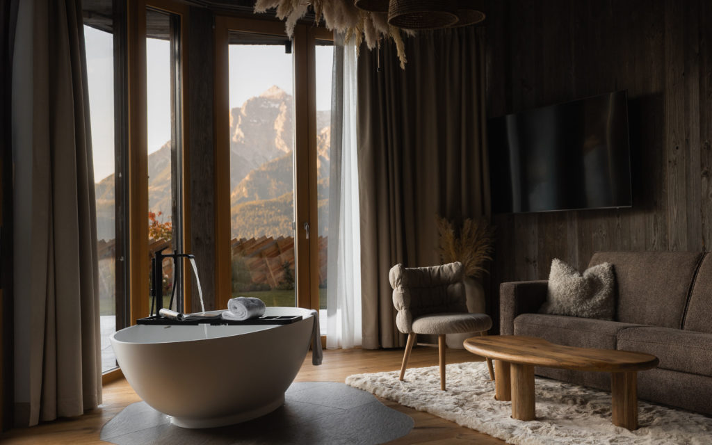 Mit dem neuen Infinitypool Blue Heaven erweitert die Jufenalm ihr Wellness-Angebot um ein 42 Meter langes, beheiztes Außenbecken auf 1.150 Metern Höhe. Mit freiem Blick auf das Steinerne Meer können Gäste hier schwerelos im Wasser entspannen. Wer morgens noch die Ruhe im Schwimmbecken genießen, aber auf sein Frühstück nicht verzichten möchte, bucht das Floating Breakfast. Die Gastfamilie Rohrmoser schuf mit dem neu ausgebauten Spa Cloud Nine einen stilvollen Ort zum Entspannen zwischen Himmel und Erde. Erholung versprechen das Dampfbad sowie die Kräuter- und Eventsauna im Spa und zwei finnische Saunas im Außenbereich. Alle vier bieten eine Aussicht auf das Steinerne Meer oder ins Tal. Eine Erlebnisdusche unter freiem Himmel runden das Erlebnis ab. Räumlichkeiten wie The Golden, Little Nest oder Silent Nest bieten Raum für Rückzug. Auch am Behandlungskonzept feilte die Familie und ermöglicht ab sofort ganzheitliche Treatments wie die zweistündige Bohemian Signature-Massage. Der Wellnessbereich ist exklusiv für Jufenalm-Gäste vorbehalten und bietet bei der überschaubaren Besucherzahl viel Platz und Raum zum Runterkommen. „Uns war wichtig, ein Wellness-Angebot zu schaffen, das nicht überfüllt, sondern exklusiv ist – mit viel Raum für Ruhe und persönliche Erlebnisse. Unsere Gäste sollen hier nicht nur Urlaub machen, sondern auf ihre eigene kleine Reise gehen“, erklärte Stefanie Rohrmoser. „Boho bedeutet für uns Freiheit, Individualität und Nähe zur Natur. Mit den neuen Suiten, dem Infinitypool und dem erweiterten Spa möchten wir genau dieses Lebensgefühl spürbar machen.“