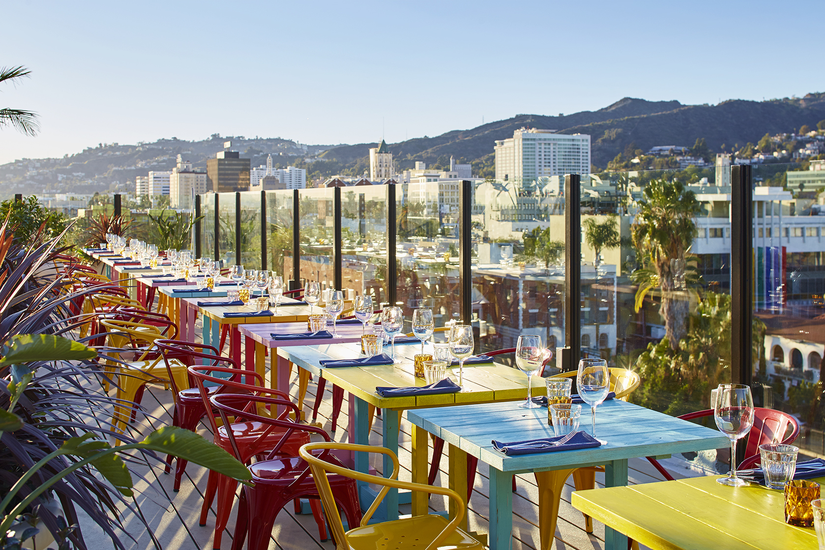 Ob an der Bar, in den lässigen Polstermöbeln oder an den langen Community-Tischen – die hellbunten Farben, der obligatorische Tischkicker und die Musik schaffen ein Flair, in dem Zeit und Außenwelt schnell in den Hintergrund rücken. MAMAs Cocktailkarte, der unwirkliche 360°-Blick auf Stadt, Pazifik und das legendäre Hollywood-Sign sowie die wechselnden Live-DJs tragen selbstredend ihren Teil dazu bei. Ob beim Brunch oder beim Sundowner, nach dem abendlichen Dinner – zum Beispiel mit MAMAs Signature „braised shortribs“ – oder beim Blockbuster-Schauen im Open Air Cinema: Hier oben lässt es sich wunderbar in den Vibe der Stadt eintauchen, ohne das Hotel auch nur zu verlassen.