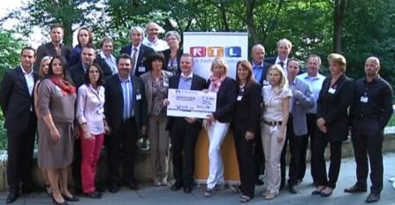 Zum Abschluss des offiziellen Teils nimmt der prominente Fernsehmoderator Wolfram Kons von den Event-Verantwortlichen einen symbolischen Spendenscheck entgegen: Der gesamte Erlös der Werte-Veranstaltung wird der „Stiftung RTL – Wir helfen Kindern e.V.“ zugeführt.