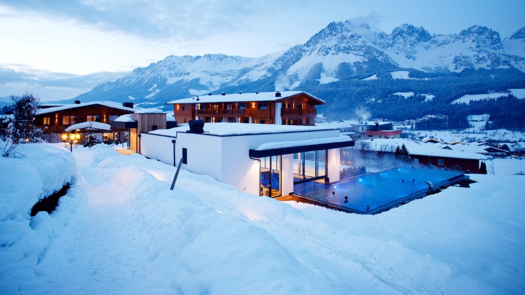 Das Hotel „Der Bär“ liegt am Fuße des Wilden Kaisers in Ellmau/Tirol und damit ideal, um so einfach wie möglich ins Wintervergnügen einzusteigen. Skifahrer und Snowboarder starten fast direkt vor der Haustür und erkunden von dort aus die SkiWelt Wilder Kaiser-Brixental. Sowohl abwechslungsreich als auch sehr gut erschlossen präsentieren sich hier die Berge als Winterparadies für Anfänger und Könner gleichermaßen. Die tief verschneite Naturregion zieht auch unzählige Schneeschuhwanderer an und die zahlreichen, endlos erscheinenden Loipen bieten ideale Bedingungen für einen entspannten Tag an der frischen Luft.