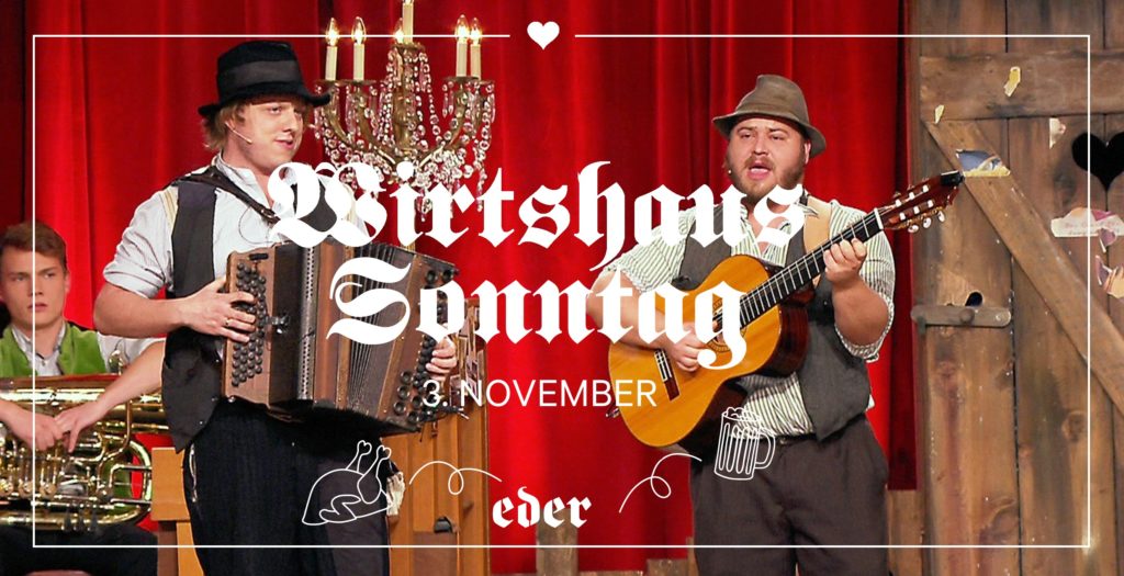 Beim Wirtshaus-Sonntag wird geplaudert und gelacht, getanzt und gefeiert, gegessen und getrunken – ganz wie in guten alten Zeiten. Die Musikanten Tom & Basti rund um den in Bayern und Österreich bekannten Gstanzl-Sänger und Humorist Bene Weber mit Band spielen ab 11 Uhr zum Frühschoppen auf. Für Unterhaltung, Überraschungen, deftiges Essen und einen kräftigen Schluck Bier ist gesorgt.