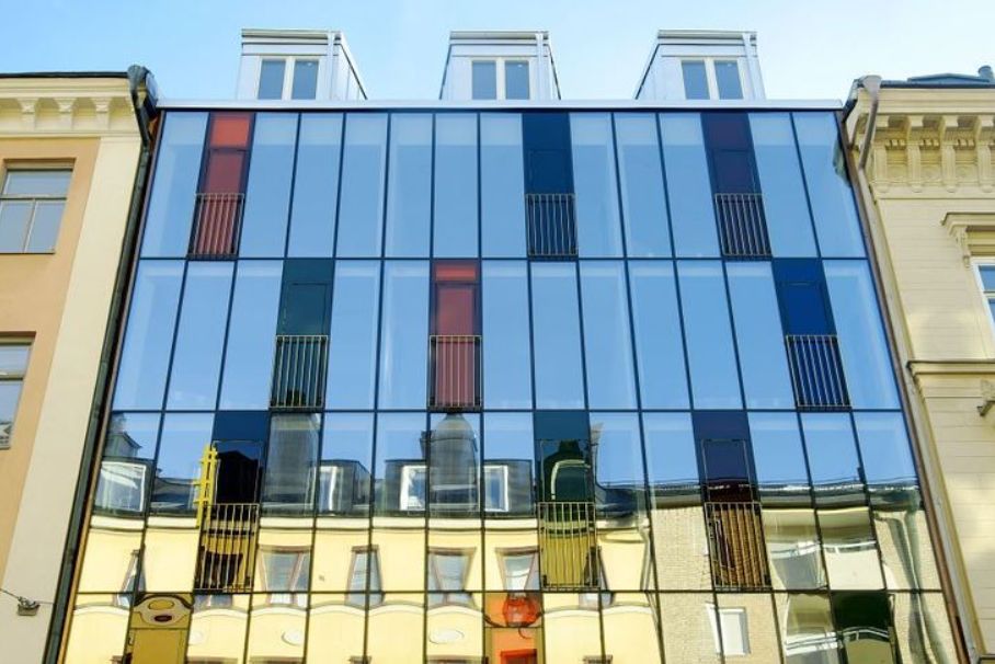 Doch nach der Umgestaltung durch das Architekturbüro „In Praise of Shadows“ findet man statt schwerem Eisen viel Glas vor. Das steinerne Portal ist erhalten geblieben und bildet nun einen Kontrast mit der mehrfarbigen Glasfront, die sich von den angrenzenden Jahrhundertwendehäusern abhebt und dem Straßenzug der Wollmar Yxkullsgatan einen modernen Hingucker schenkt. Dahinter verbirgt sich ein Treffpunkt für Reisende und Kulturinteressierte. Das Hotel hat nicht nur 44 individuell eingerichtete Zimmer mit Himmelbetten und antiken Möbeln, sondern auch eine sehenswerte Bar: Der Hotelbesitzer und Ethnograf Per Hellsten, der als Fotograf auf allen Kontinenten arbeitete, steuert exotische Andenken und afrikanische Masken aus seiner Sammlung bei. Vor dieser multikulturellen Kulisse werden nordische Gerichte und erlesene Weine serviert. Auf der Livebühne Glashuset WY13 treten oft Jazzmusiker auf.